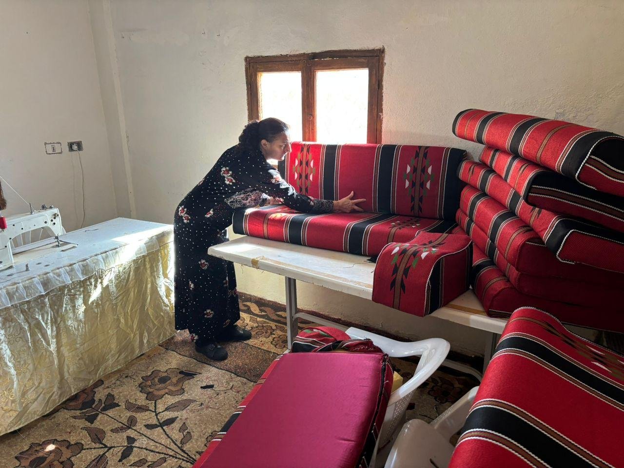 و٢ – الهدف الثاني هو تمكين النساء المهجرات من القرى المنكوبة من خلال دعم أجرة يدهم مما يوفر لهم مصدر ثابت للدخل